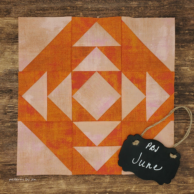 When I'm choosing colors for each month I have tried to stay away from the typical colors, while this isn't always the case, I like the extra challenge of getting out of that mindset of "spring colors," "fall colors," "Christmas colors," ete. I would love to hear from our southern hemisphere quilters though, if "pumpkin" in June is fitting?